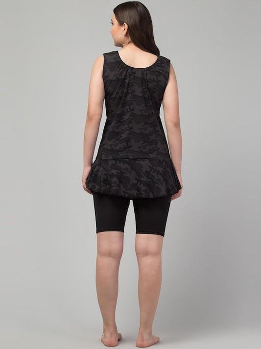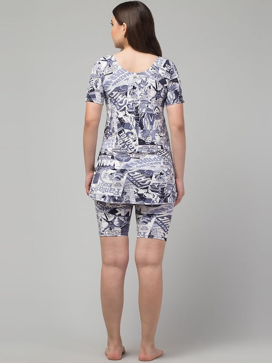 Printed Swimming Dress With Attached Shorts