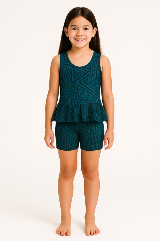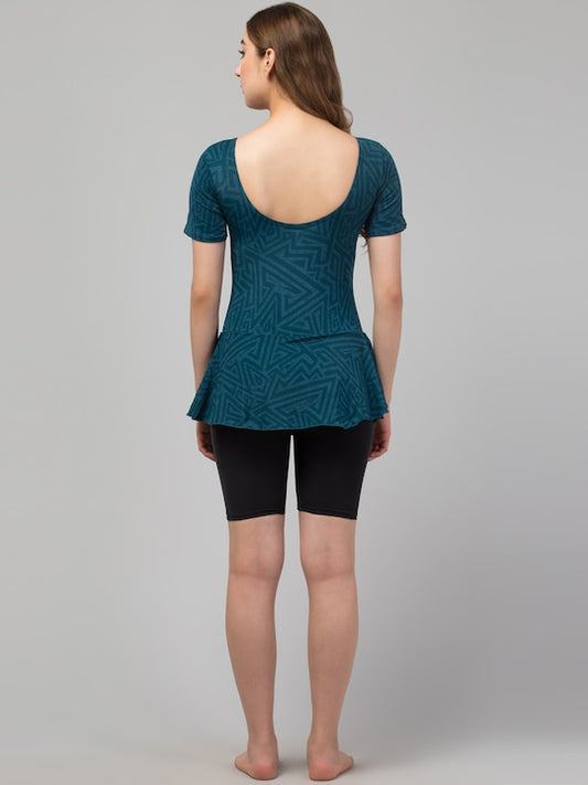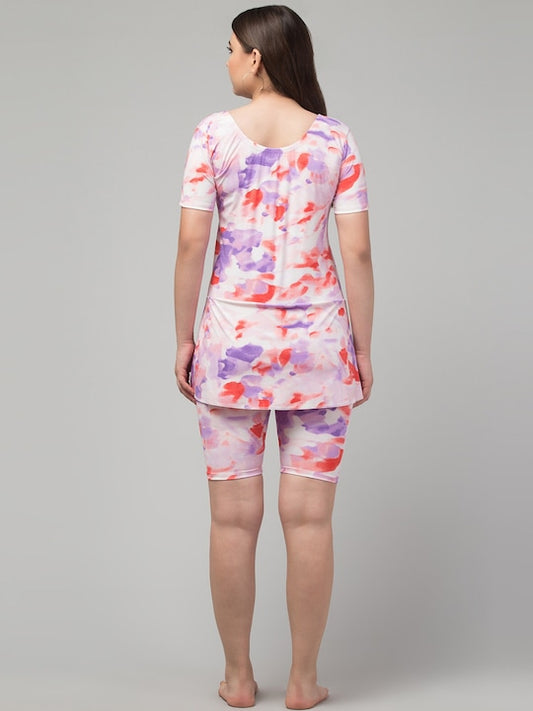 Abstract Printed Swimming Dress With Attached Shorts