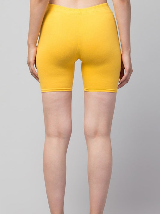 Women Solid Yellow Mid-Rise Gym Short Brief