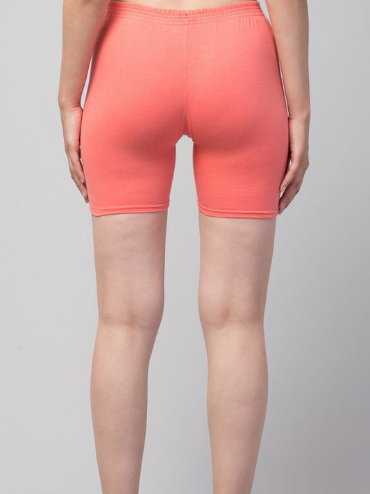 Women Solid Dark Orange Mid-Rise Gym Short Brief