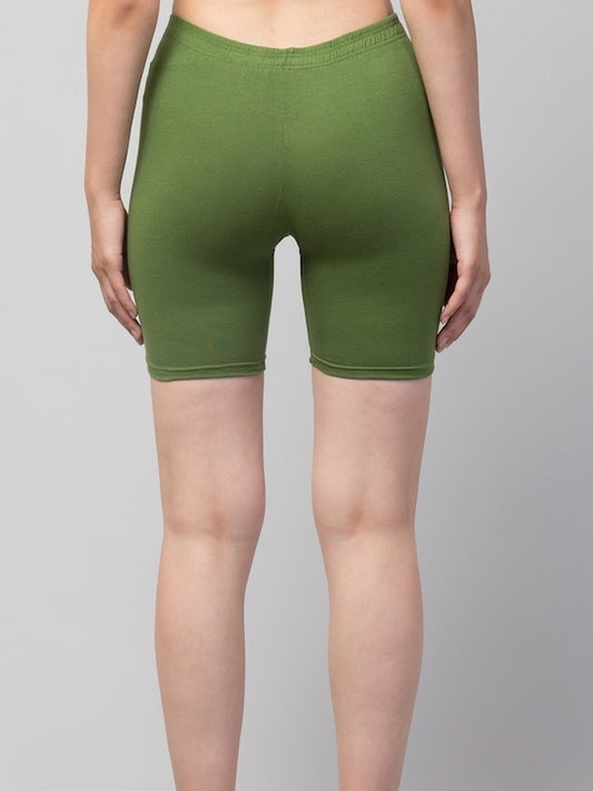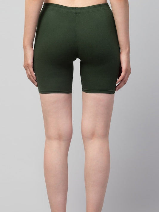 Women Solid Dark Green Mid-Rise Gym Short Brief