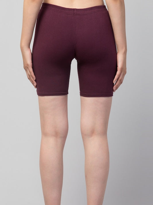 Women Solid Dark Maroon Mid-Rise Gym Short Brief