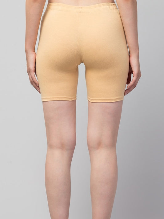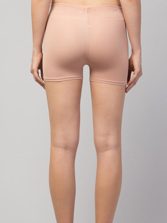 Women Solid Beige Mid-Rise Gym Shorts Briefs