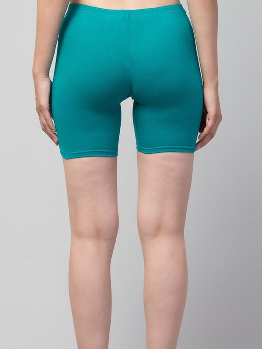 Women Solid Sea green Mid-Rise Gym Short Briefs