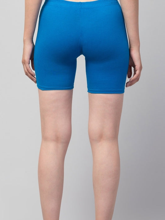Women Solid Turquoise Blue Mid-Rise Short Brief
