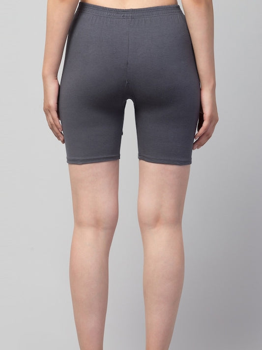 Women Solid Navy Blue Mid-Rise Gym Short Brief