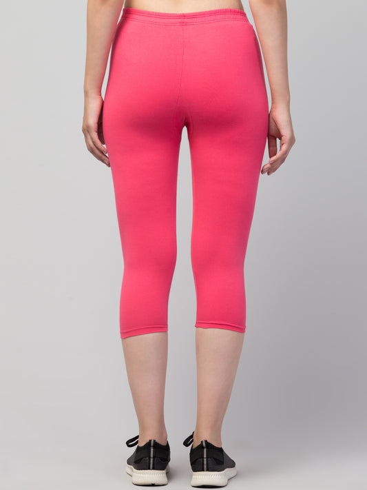 WOMEN SOLID RANI PINK MID RISE SKINNY FIT CAPRIS