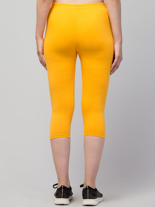 WOMEN SOLID DARK YELLOW MID RISE SKINNY FIT CAPRIS