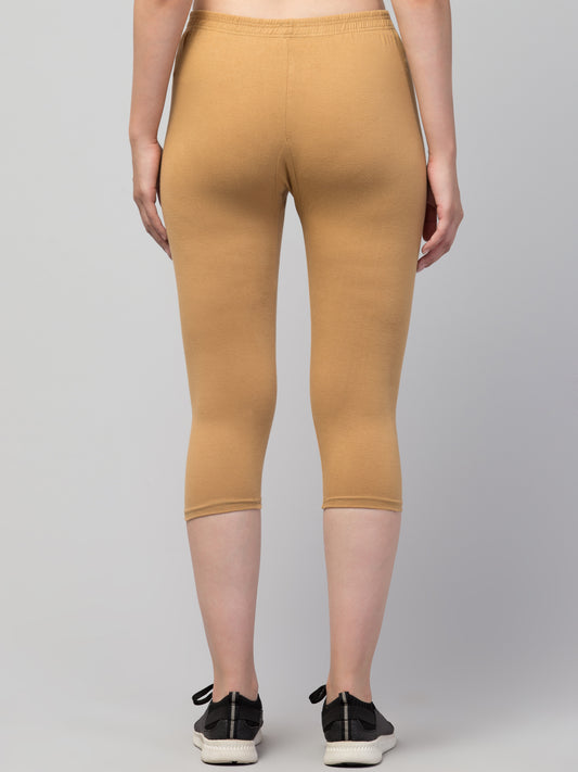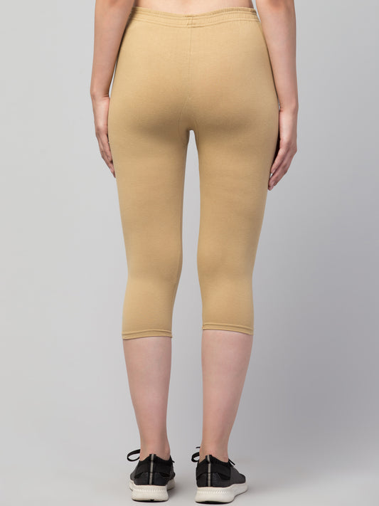 WOMEN SOLID CHIKU MID RISE SKINNY FIT CAPRIS