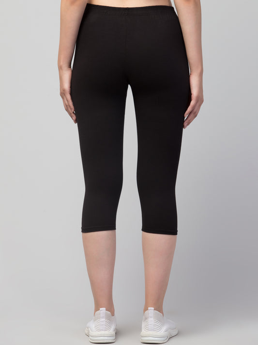 WOMEN SOLID BLACK MID RISE SKINNY FIT CAPRIS