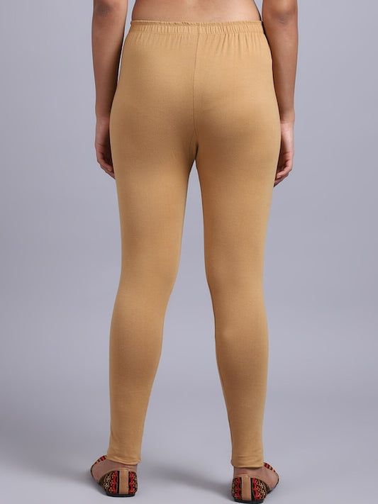Women Solid Beige Mid-Rise Slim Fit Leggings