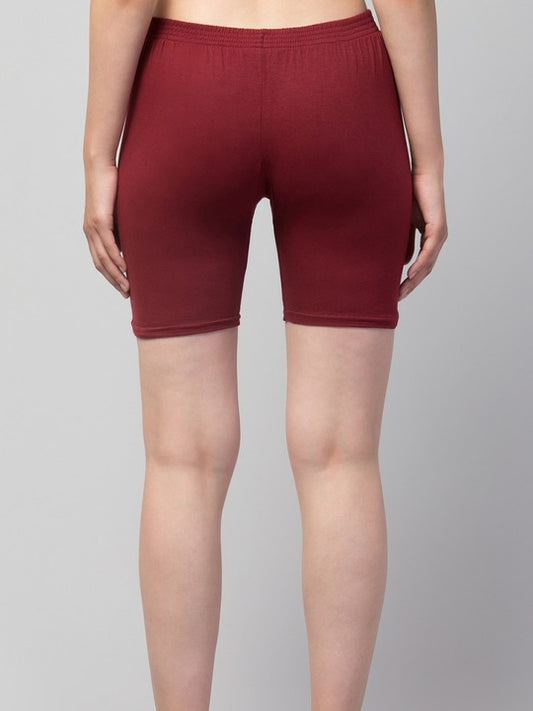 Women Solid Dark Maroon Mid-Rise Gym Short