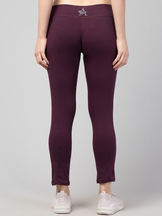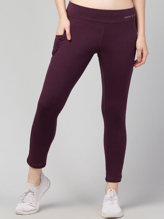 Purple solid tights has an elasticated waistband with slip-on closure & two pockets