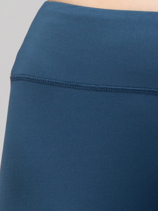 Teal solid high waist tights has an elasticated waistband with slip-on closure