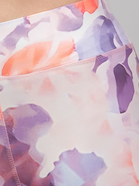 Pink printed Dry-fit ankle-length high-rise gym tights has an elasticated waistband with slip-on closure