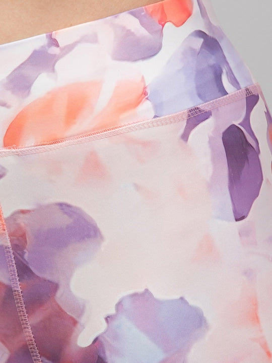 Lavender printed ankle-length high-rise gym tights has an elasticated waistband with slip-on closure